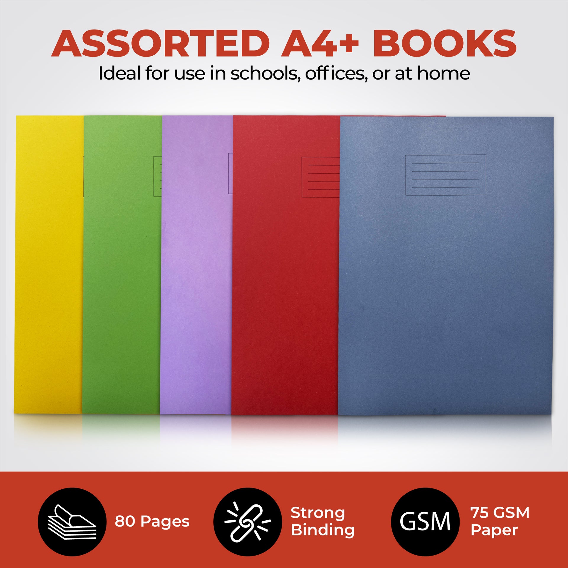 Pack of 50 Janrax A4+ Assorted 48 Page Feint Ruled and Margin Exercise Books WF Paper with 225gsm Manilla Cover 240x340mm Workbook
