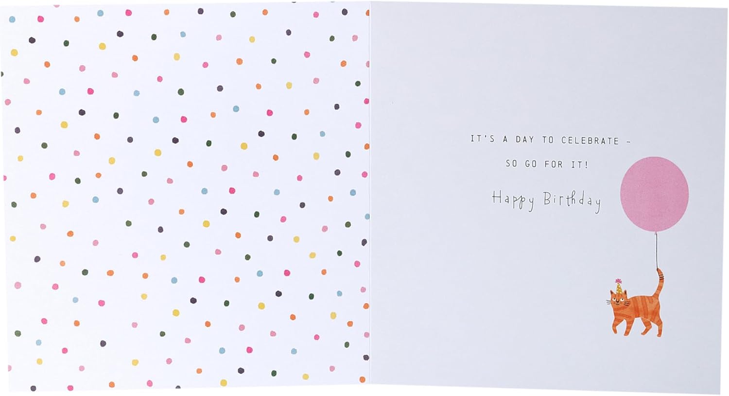 Celebrate their special day with this fun birthday card, featuring a cats design printed on premium quality board with gold foil details. Message Inside Reads: It's a day to celebrate - so go for it! Happy Birthday Card Size: 15.9cm x 15.9cm | Envelope Included