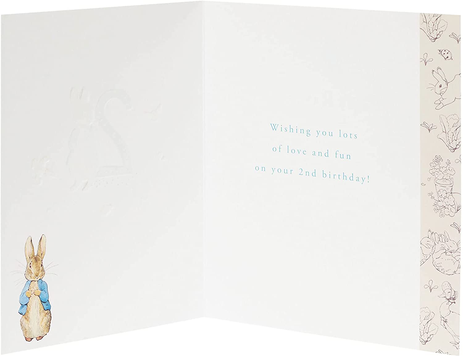 This cute Peter Rabbit card, with gold foil finishes, is a wonderful way to wish a special boy a happy 2nd birthday. Inside Message Reads: Wishing you lots of love and fun on your 2nd birthday! Card Size: 159 x 184mm. Envelope Included.