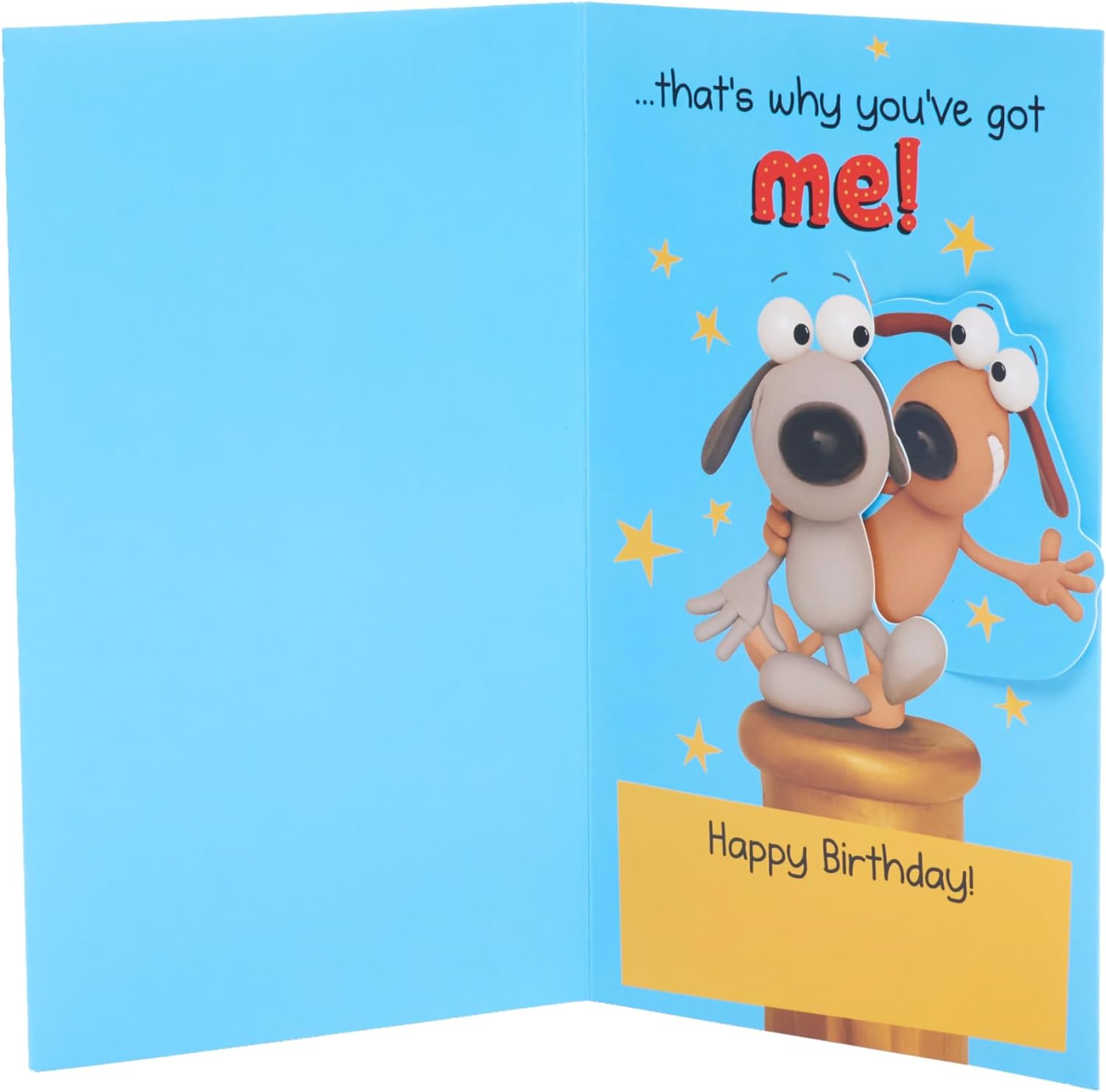 A fun and bright birthday card for your brother featuring cute plasticine dog characters, a brilliant pop-up and a hilarious bait-and-switch self-complimentary joke. Message Inside Reads: ..that's why you've got me! Card Size: 149mm x 229mm. Envelope Included. This product is FSC-labelled, meaning you’re supporting responsible forestry and helping fight climate change, protect biodiversity, and support communities.