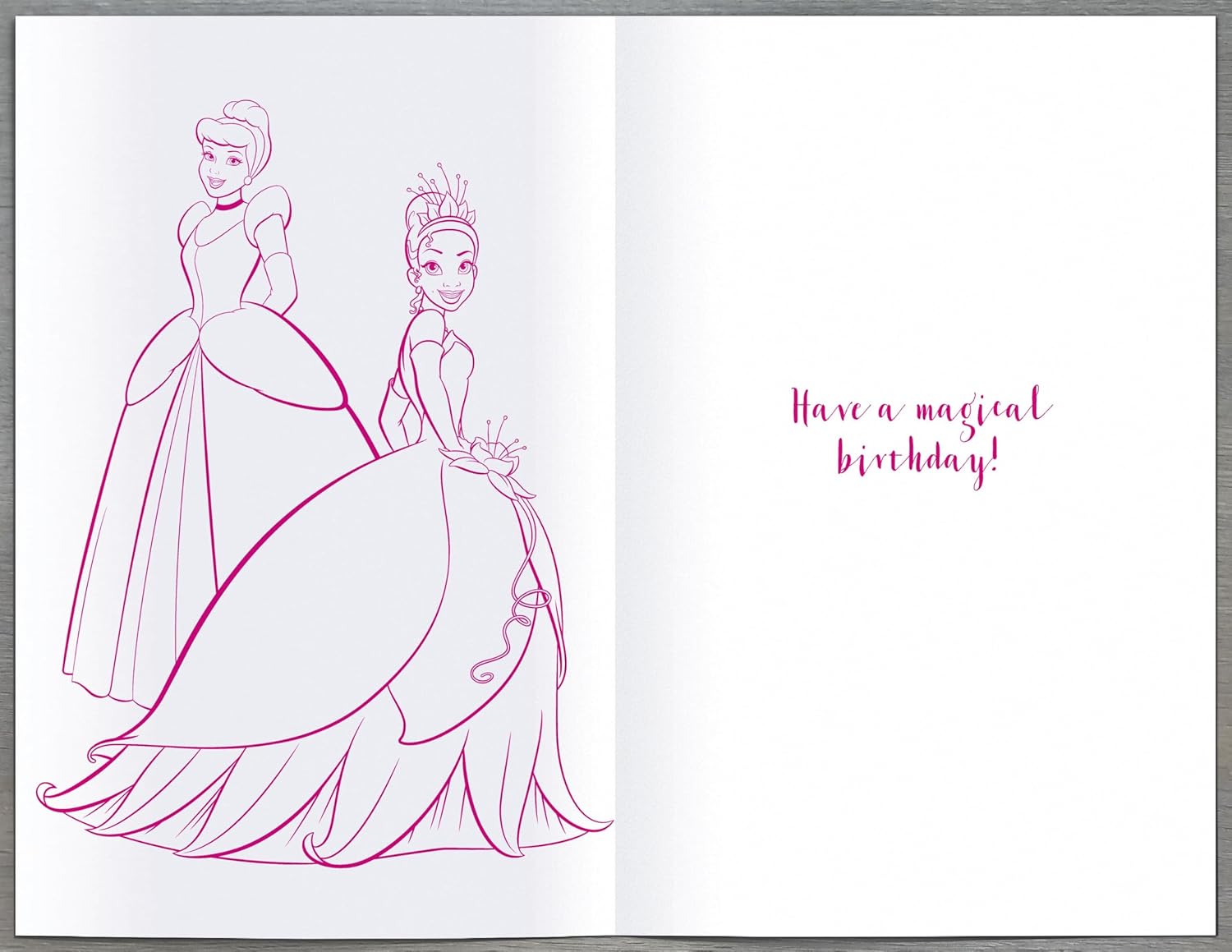 UNIQUE DISNEY PRINCESS DESIGN FOR GIRLS: This delicate card is made with unique Cinderella, Tiana and Rapunzel Princesses Design from Disney, Message on the front of the card says "It's Your Day to Shine, Princess " And inside of the card says " Have a Magical Birthday! " This card comes with coordinating envelope. CARD SIZE: 20cm x 14cm ROYAL MAIL STANDARD LETTER SIZE