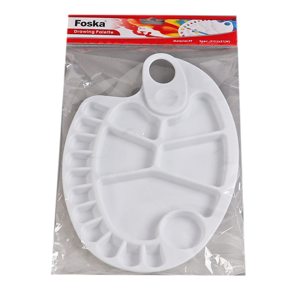 Professional Art Drawing Plastic Water Colour Mix Paint Tray Naked Palette. Size: 30.5 x 21cm. Our Professional Art Drawing Plastic Water Colour Mix Paint Tray, dubbed the "Naked Palette," combines functionality with thoughtful design, perfect for artists dedicated to watercolour painting. Sized at 30.5 x 21cm, it provides a generous workspace for mixing a broad array of colours, suitable for both expansive projects and detailed work. Crafted from durable, high-quality plastic, this palette is not only lightweight for ease of handling but also robust enough to endure the rigours of both studio and fieldwork. A distinctive feature is the inclusion of a finger hole, designed for superior grip and handling ease, allowing artists to hold the palette securely while working. This design ensures the palette remains stable and accessible, enabling a seamless painting process. Its smooth, easy-to-clean surface is ideal for maintaining the purity of your watercolour pigments. Whether you're a professional artist or an enthusiastic beginner, this Naked Palette is an indispensable tool that promises to enhance your watercolour techniques and creative expressions.