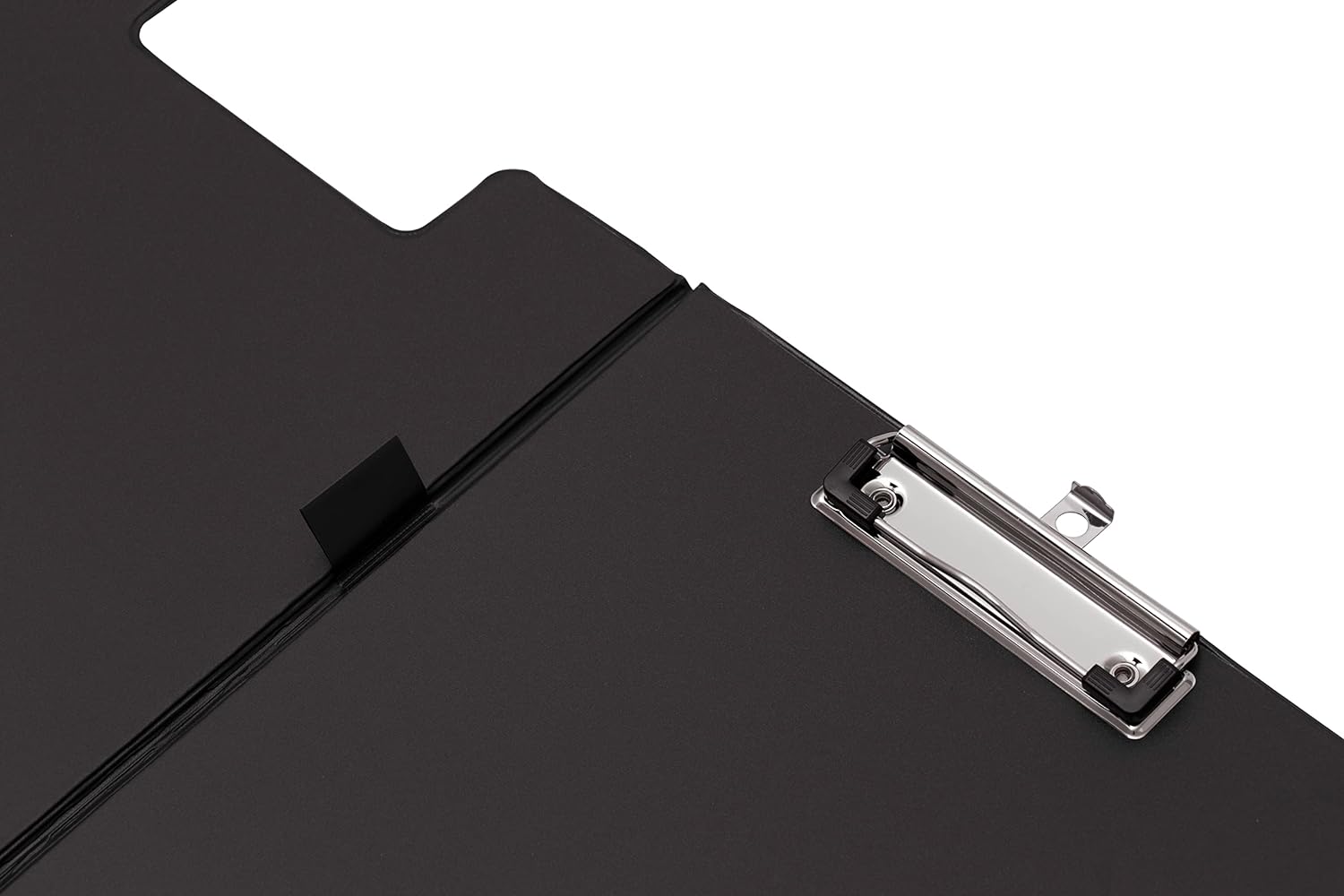 Q-Connect Foldover PVC Clipboard. Rigid PVC covered board with heavy duty clip and a handy inside pockets for loose papers. Suitable for foolscap and A4 papers. Colour - Black.