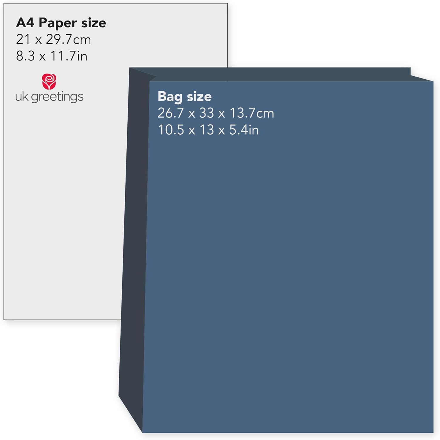 Sophisticated and stylish, this large gift bag with a gold crackle effect tag will bring an extra touch of class to any present. Ideal wrapping solution for clothes, books, toys etc; Pack contains 1 large gift bag Bag Size: W: 330mm x H: 267mm x G: 137mm