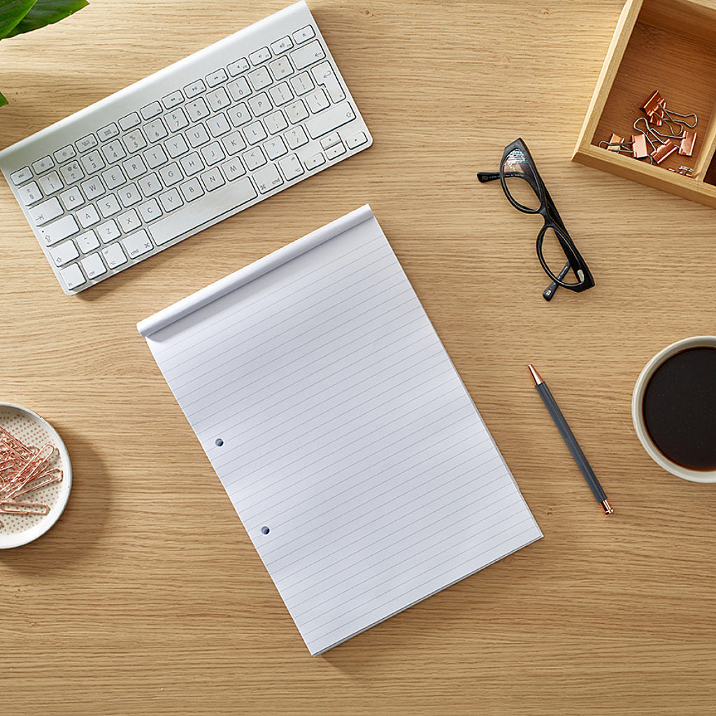High quality refill pad with 120 pages, each ruled 8mm with margin. This paper pad is ideal for making notes with pages suitable for writing on both sides. RHINO 8 x 6.5 Refill Pad 60 Leaf, F8. 8 x 6.5 (approx. 200 x 150mm). Ruled with 8mm feints. Education-standard 75gsm smooth white paper. Practical lightweight cover. Punched 2 Holes. 100% recyclable. Printed using solvent-free, water-based inks. Made in EU.