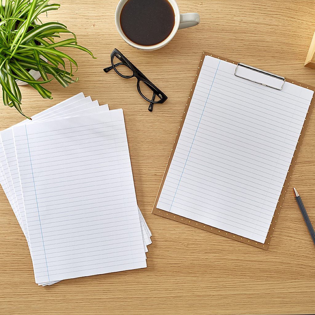 High quality 500 leaf set of looseleaf paper ruled 8mm with margin. The A4 75gsm paper is ideal for making notes and is suitable for writing on both sides. Educational standard exercise paper. RHINO A4 Exercise Paper 500 Leaf, F8M. A4 (approx. 297 x 210mm). Ruled with 8mm feints and a margin. Education-standard 75gsm smooth white paper. 100% recyclable. Printed using solvent-free, water-based inks. Made in EU.