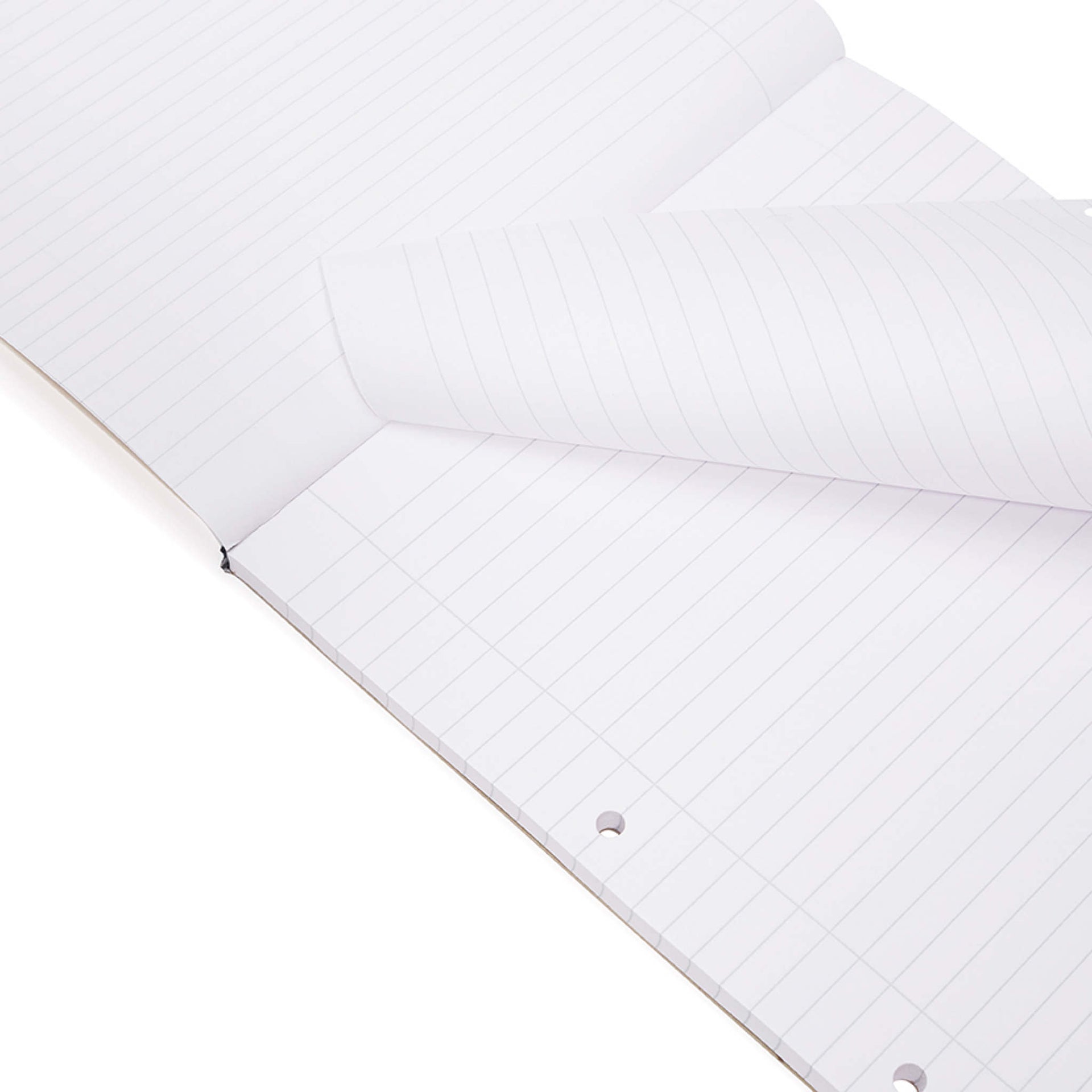 RHINO Refill Pad A4 with 80 leaves each ruled with 8mm lines and with a margin. This refill pad has pre-punched education standard white paper, you can write on both sides with a quick and neat tear-out to put in your folder or binder. The flexible nature of this pad means it can be used as a journal, organiser or homeschool jotter, and you can write on both sides and quickly transfer to your folder or binder. RHINO Refill Pad A4 (297 x 210mm approx.) 80 Leaf / 160 Pages. Strong front cover keeps every day notes safe and protected. Premium pre-punched education standard 75 gsm white paper. Each page has 8mm lines and a margin. Simple tape binding along the top and 2 pre-punched holes for easy filing. Durable hard back cover. 100% recyclable. Printed using solvent-free, water-based inks. Made in EU.