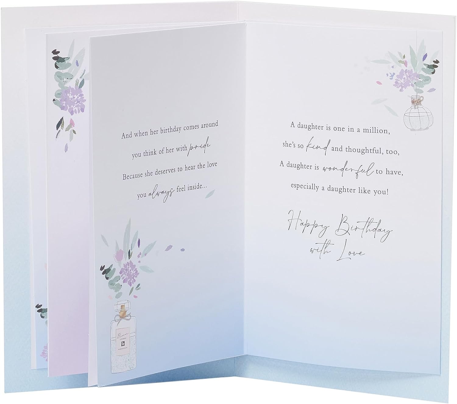 Remind your daughter how much she means with this beautifully worded birthday card, accented with embossed gold foil and iridescent detailing. Message Inside Reads: A daughter is a precious part of the memories you share - Your family times together mean much more because she's there... Ever since she was a little girl you've treasured all the ways... ...a daughter has of bringing smiles to many different days... With lively chats and laughter she makes life much more fun... Card Size: 149mm x 229mm. Envelope Included.
