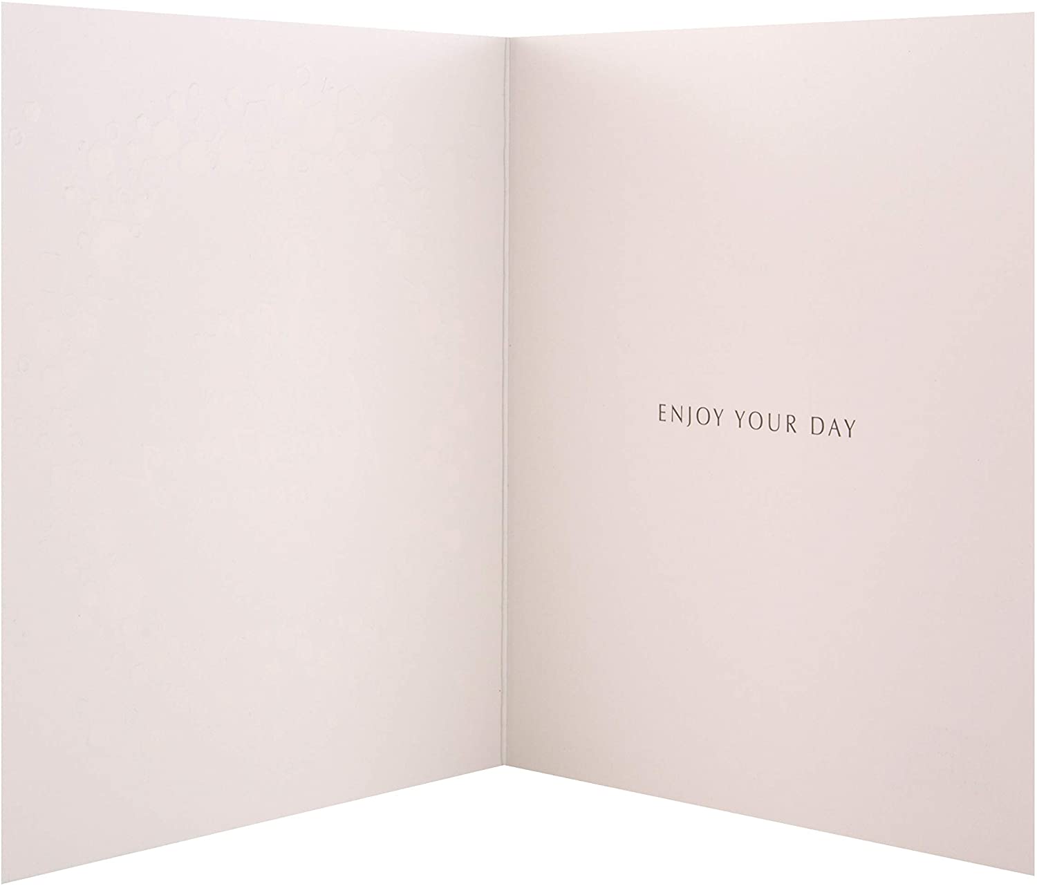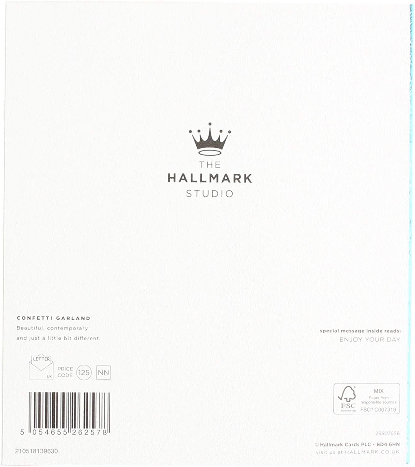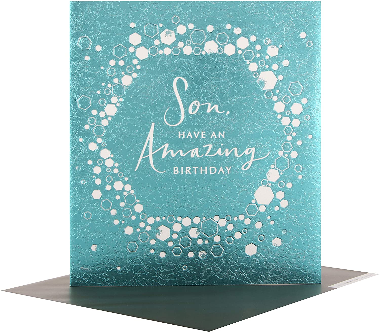 Silver Foil Confetti Garland Design Son Birthday Card. Message inside reads: 'Enjoy your day'. Envelope: Silver. Size: 185 x 165mm. FSC certificate: paper from responsible sources.