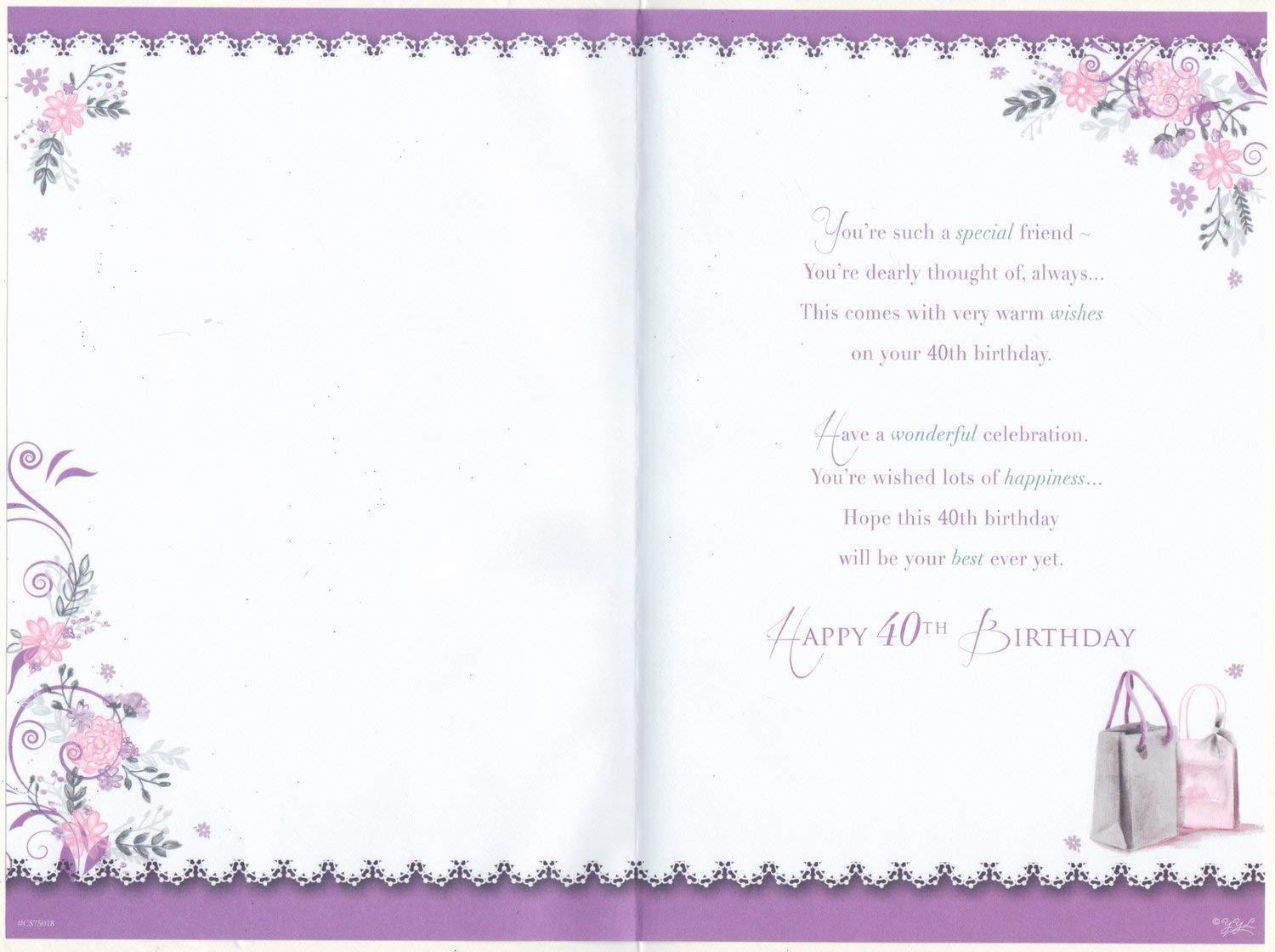 Special Friend 40th Birthday Card 'For A Special Friend On Your 40th Birthday'