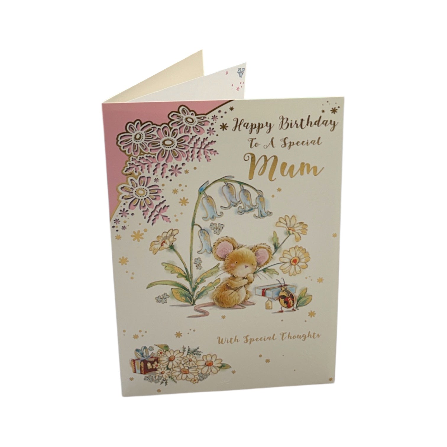 Special Mum Cute Mouse with Flowers Design Birthday Card
