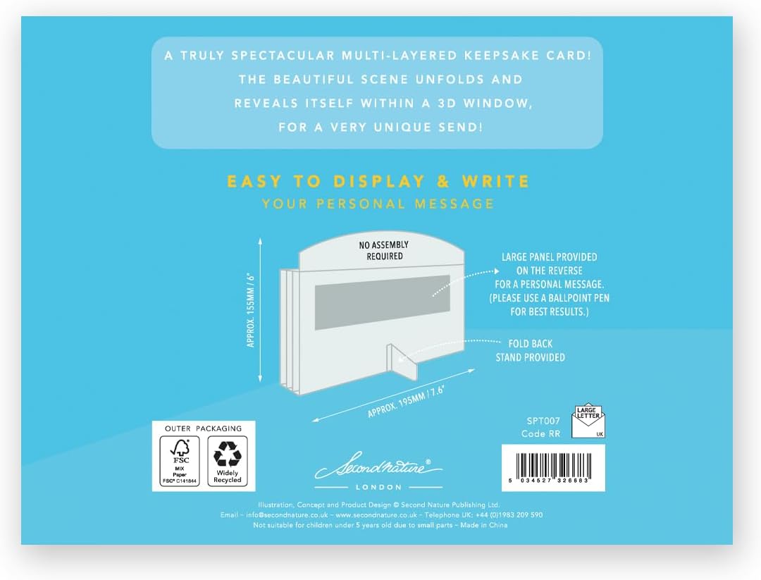 Treat a special them to a truly Spectacular freestanding birthday card complete with a 3D sealife scene especially for them! You are viewing: A Birthday Card with a 3D sealife scene Occasion: Perfect for a Birthday Details: A fun birthday greeting card from Second Nature's magical Spectacular range of freestanding multi-layered cards that unfold to reveal a fabulous scene within a 3D window, hand-finished with embellishments Card Size: 19.5cm x 15.5cm x 3cm 7.6" x 6" x 1.5"
