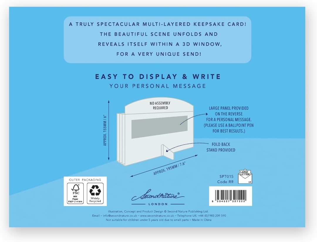 Treat a special Son to a truly Spectacular freestanding birthday card complete with a 3D scene especially for them! You are viewing: A Birthday Card for a Son with a 3D space scene Occasion: Perfect for a Birthday Details: A fun birthday greeting card from Second Nature's magical Spectacular range of freestanding multi-layered cards that unfold to reveal a fabulous scene within a 3D window, hand-finished with embellishments Card Size: 19.5cm x 15.5cm x 3cm 7.6" x 6" x 1.5"