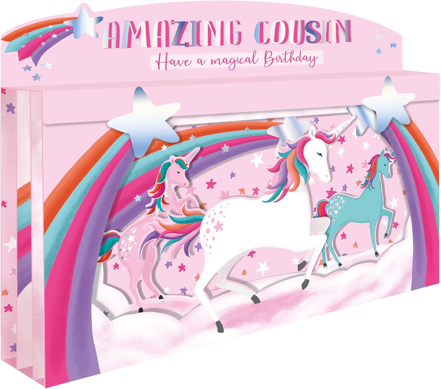 Spectacular 3D Unicorn & Rainbows Cousin Birthday Card