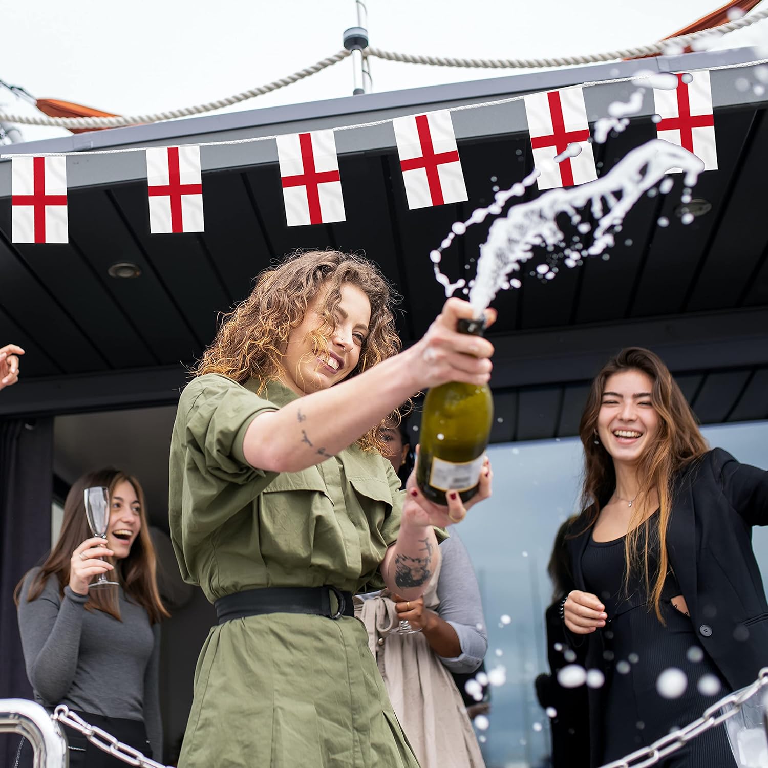 St George Flag Bunting 10m with 20 Flags. This bunting measures 10m and has 20 pennants. Material: PVC. Approx size of each Flag/ Pennant 30x20cm. Introducing the vibrant and versatile Bunting 10m with 20 Pennants, a delightful addition to any celebration or decorative endeavor. This charming bunting boasts a length of 10 meters, providing ample coverage to adorn various spaces with whimsical flair. Crafted with high-quality, durable materials, each of the 20 pennants is designed to withstand outdoor elements, making it suitable for both indoor and outdoor use. Whether you're hosting a festive gathering, sprucing up a garden party, or adding a pop of color to a room, this bunting is sure to captivate attention and evoke a sense of joy and celebration. With its eye-catching design and array of vibrant colors, it effortlessly infuses any setting with a playful and festive atmosphere. Ideal for birthdays, weddings, graduations, or simply adding a touch of charm to everyday life, the Bunting 10m with 20 Pennants offers endless possibilities for creative expression. Hang it along fences, walls, ceilings, or across outdoor spaces to instantly transform any environment into a visually stunning spectacle.