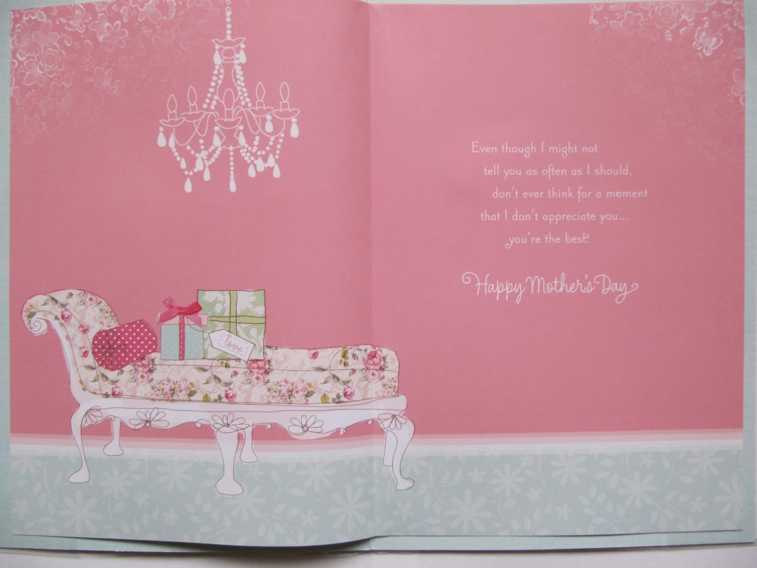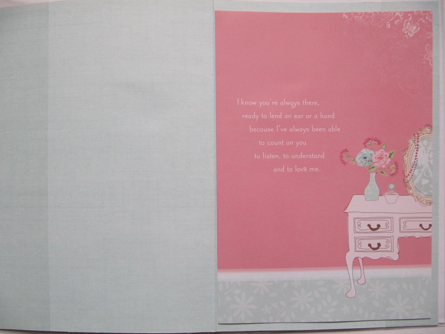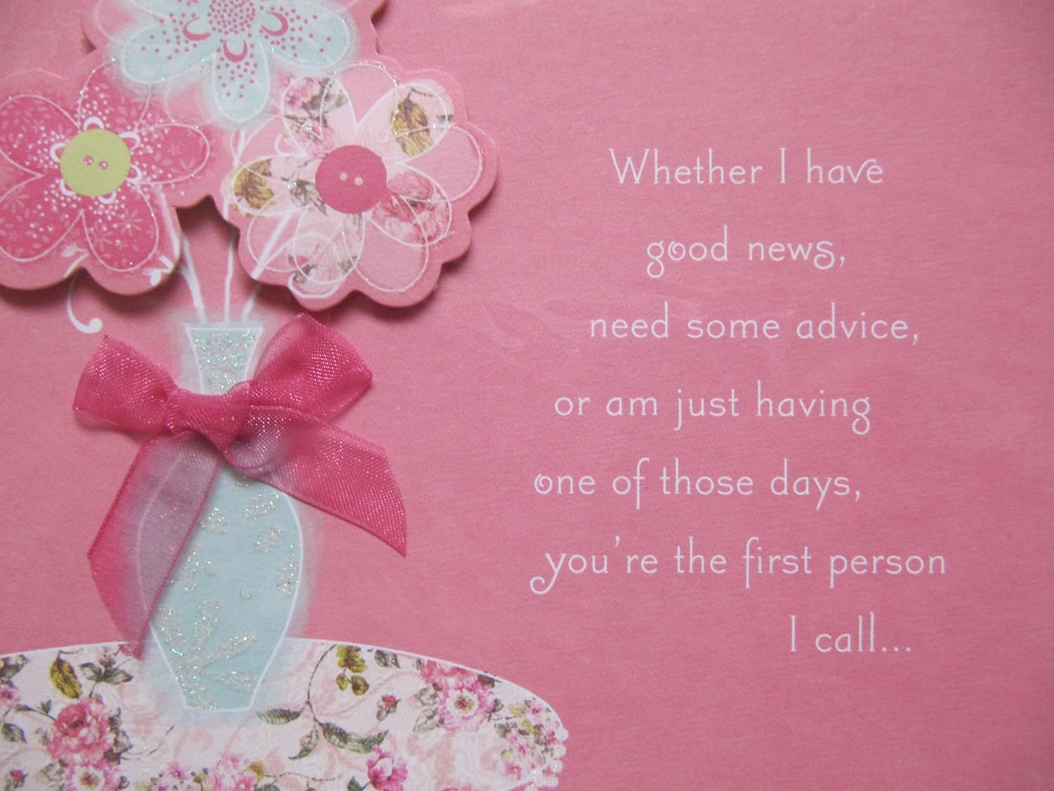 This Card is a Stunning Large Glitter Coated Luxury Top of the Range 3 Page Card with Raised Flowers and Soft Ribbon So Many Reasons to Say Thank You... Mother's Day Greeting Card.  Message on the front of the Card Reads: Please see Pictures Above. Message inside the Card Reads: Please see Pictures Above. Approximate Size of card: 10 x 7 Inches. Luxury Top of the Range Hallmark Mother's Day Greeting Card.