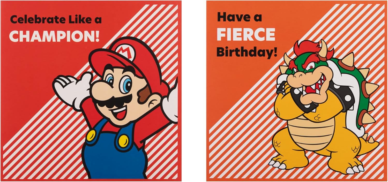Birthday Cards: Power-Up Your Party With Hallmark'S Awesome Pack Of Super Mario-Themed Birthday Cards From The Mushroom Kingdom. This Pack Of 10 Birthday Cards Is The Ultimate Way To Level Up Every Super Mario Fan’S Special Day. Birthday Cards Multipack: Level-Up The Birthday Celebrations With Our Nintendo Super Mario Birthday Cards Multipack. This Pack Of 10 Comes In 5 Awesome Super Mario Designs With The Characters Princess Peach, Luigi, Toad, Mario And Bowser. Fully Recyclable And High Quality Card: This Product Is Fully Recyclable, And Made Of Material From Well-Managed, Fsc-Certified Forests And Other Controlled Sources. Blank Inside: Every Card Is Blank Inside For Your Own Personal Message. With Enough Space To Add In Your Own Birthday Wish, A Funny Nintendo Moment Or Your Favourite Memory. Each Card Provides The Perfect Opportunity To Make Their Day Amazing. Multipack Card Size: Every Card Measures 16Cm By 16Cm And Are Perfectly Sized To Display In Your Home Or Post In The Mail. Each Card Is Accompanied With A Hallmark Branded, White Envelope. Within Uk 'Letter' Postage Size Limits.