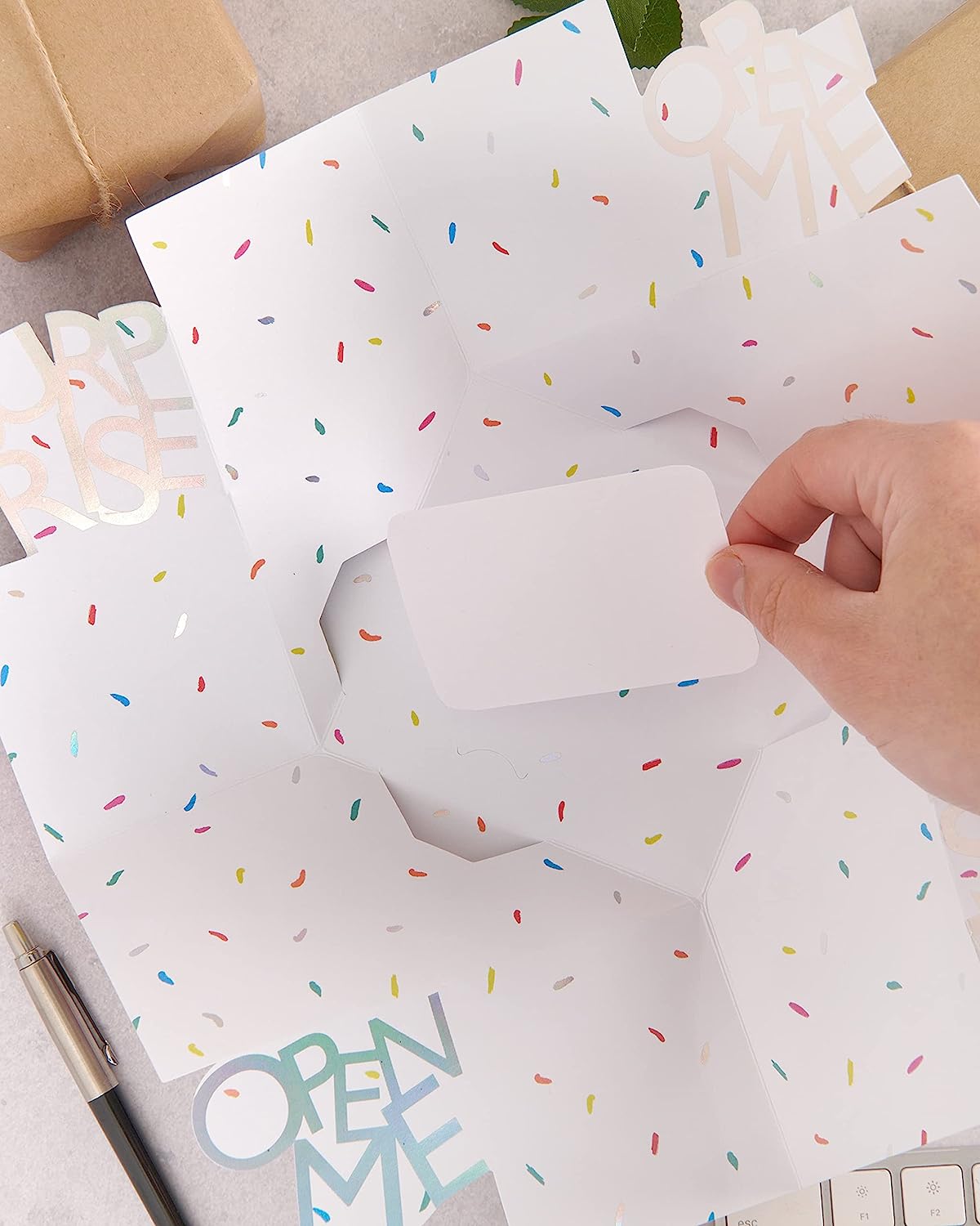 Make giving a gift card or cash even more fun by presenting it in this luxury gift card holder/money wallet. Finished with holographic foil lettering, it opens out to display your gift to perfection! Each pack contains one holder with an envelope, and is fully recyclable, including the packaging. Blank inside for your own message. Any Occasion Money Wallet Gift Card Holder Holds. Card Size: 159mm x 159mm. Envelope Included.