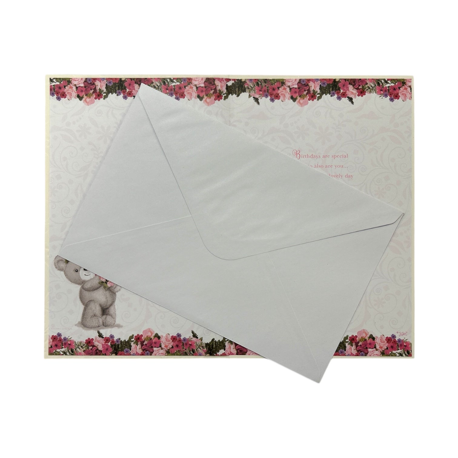 Teddy Holding A Bouquet of Pink Roses 21st Birthday Card