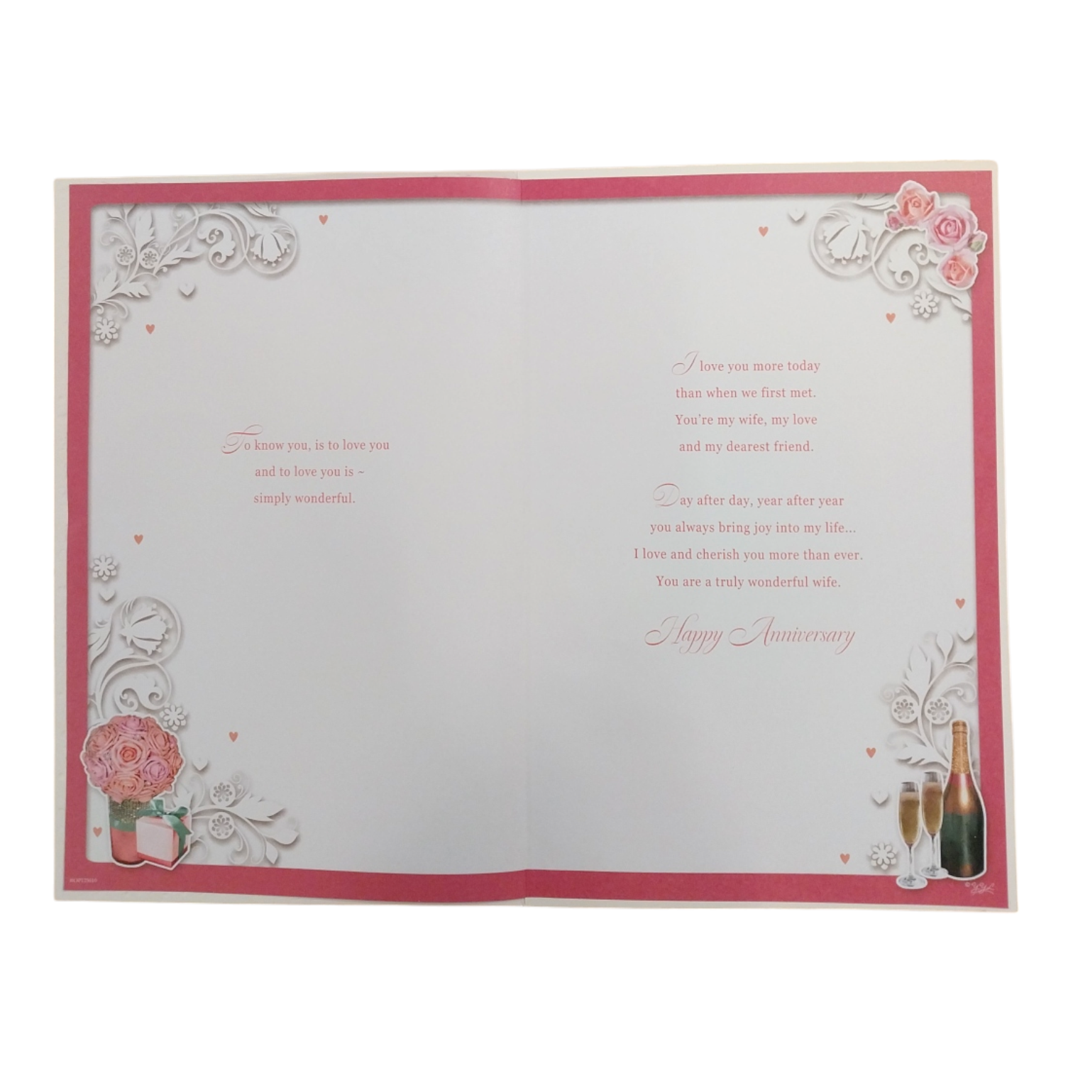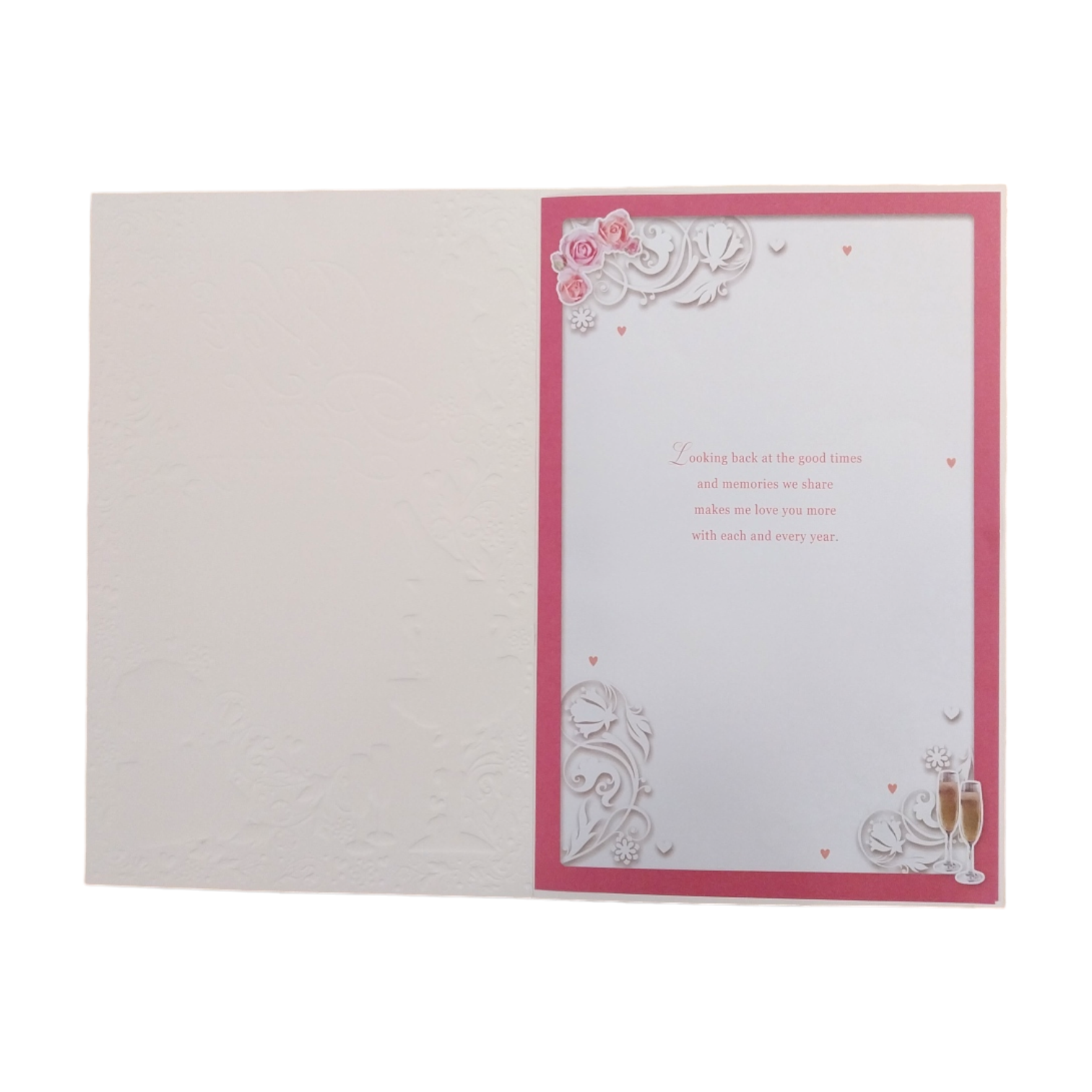To Wife Celebrating Love and Happiness Pearl Anniversary Opacity Card. Approx Size: 270 x 185mm.