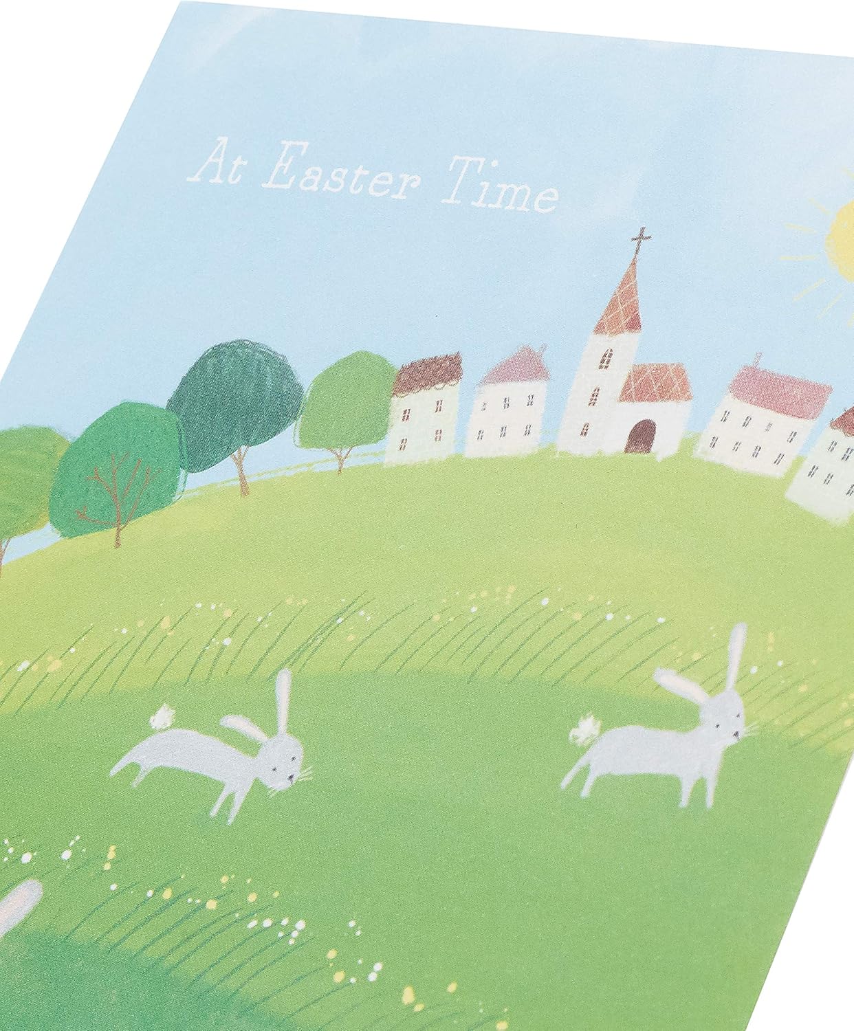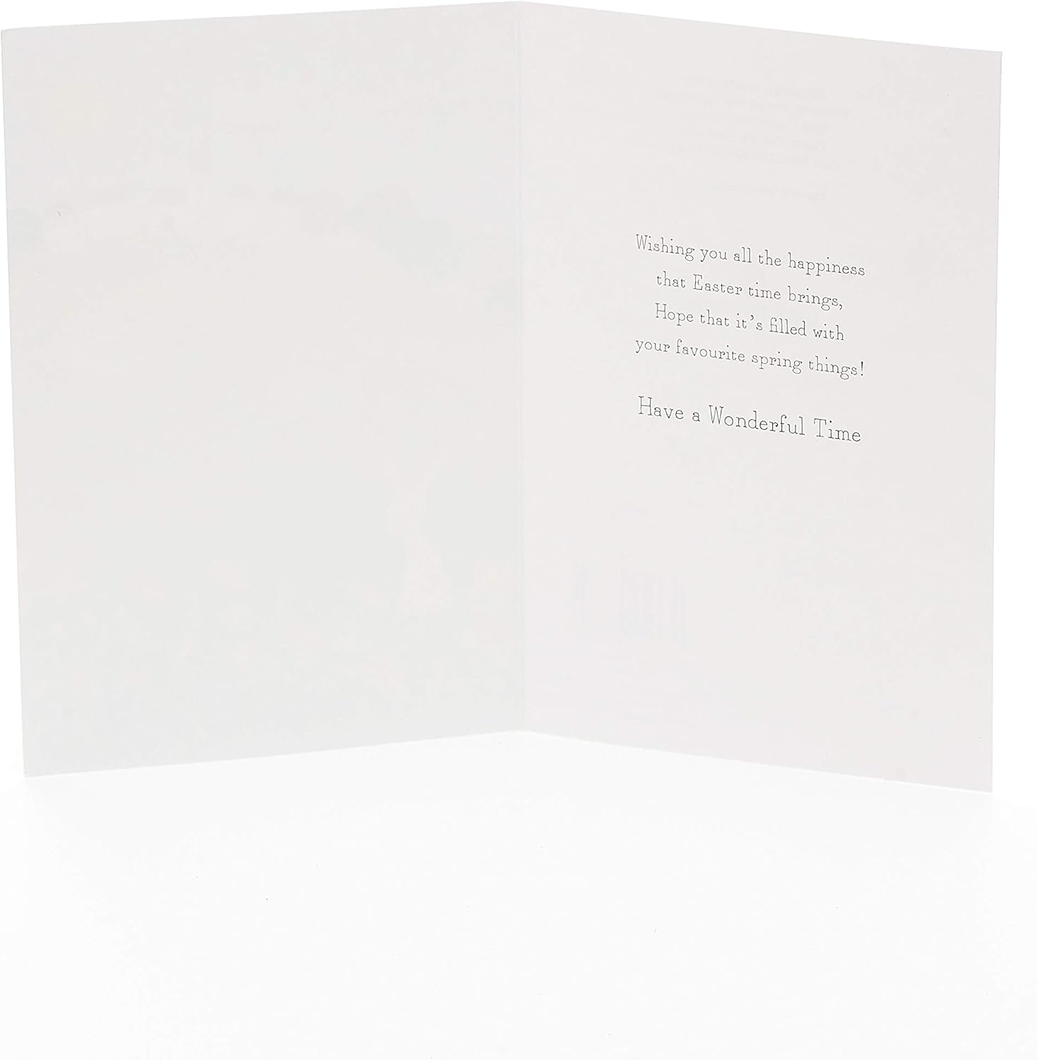 The sweet bunnies on this illustrated card make it a great send for this Easter. Message Inside reads: Wishing you all the happiness that Easter time brings, hope that it's filled with your favourite spring things! Have a wonderful time Card Size: 105mm x 159mm Happy Easter Card Envelope Included