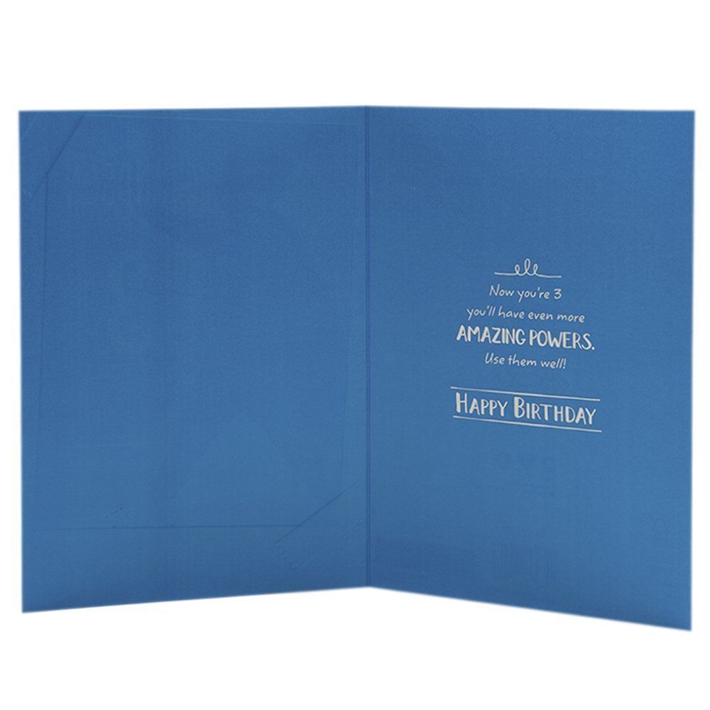Wish your grandson a super 3rd birthday with this fantastic card from Hallmark. Finishes: Embossed Detailing. Includes: Envelope. Royal Mail Postage: Standard Letter Size. Size: 233 x 164 mm.