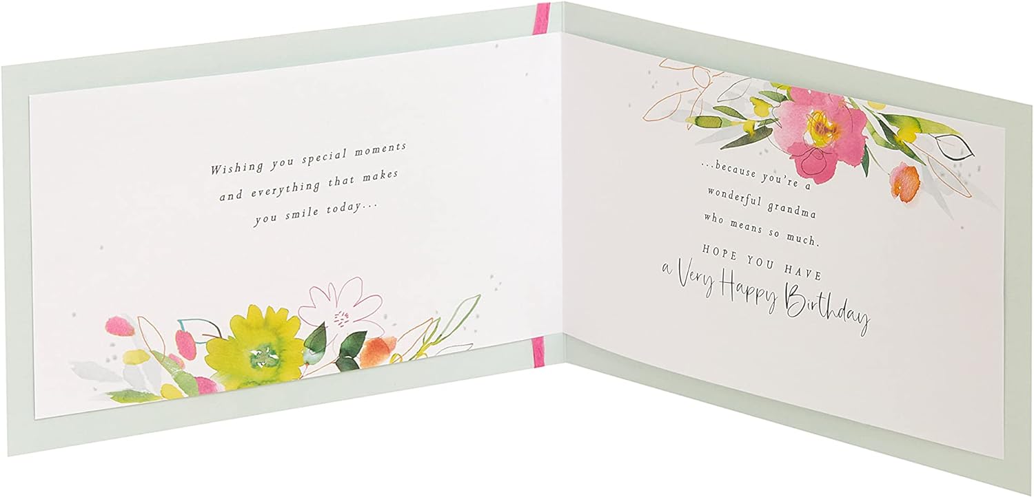 Let Grandma know how much she means with this beautiful floral birthday card, printed on premium quality board with a lovely bow and gold foil finishes. Message Inside Reads: ...because you're a wonderful grandma who means so much. Hope You Have a Very Happy Birthday. Card Size: 229mm x 149mm. Includes Envelope.