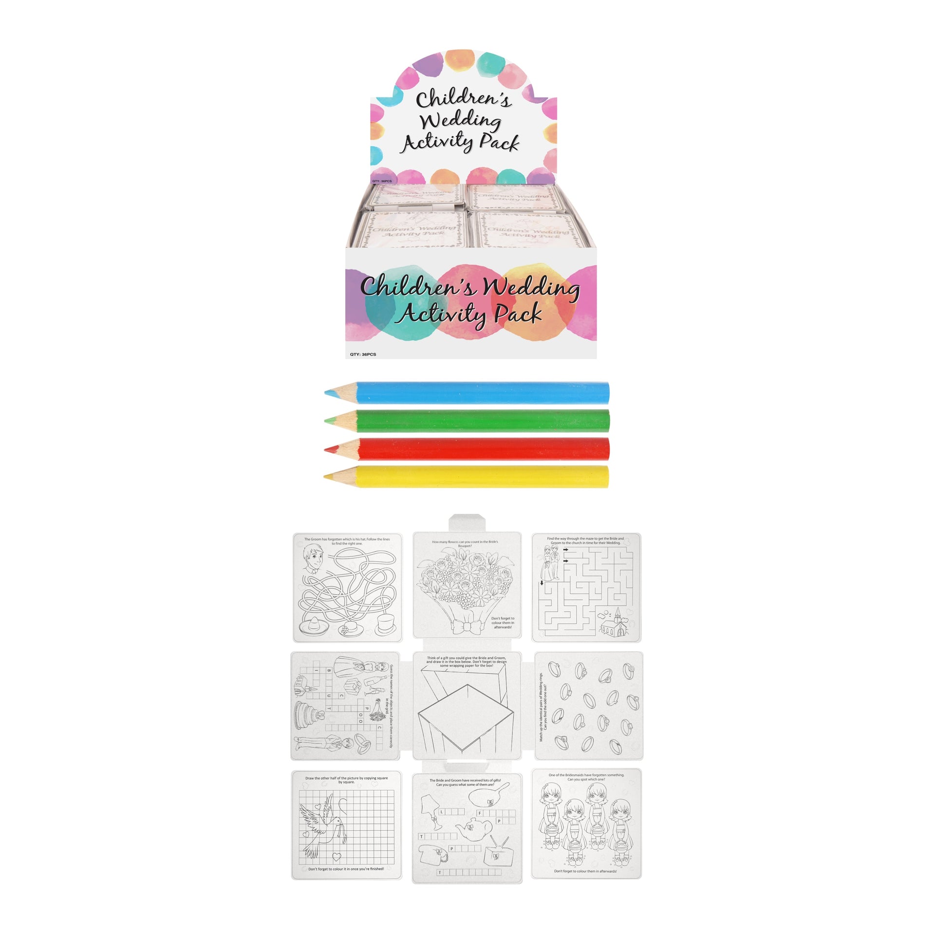 Wedding Childrens Activity Pack / Crayons Drawing Colouring Book Travel Games