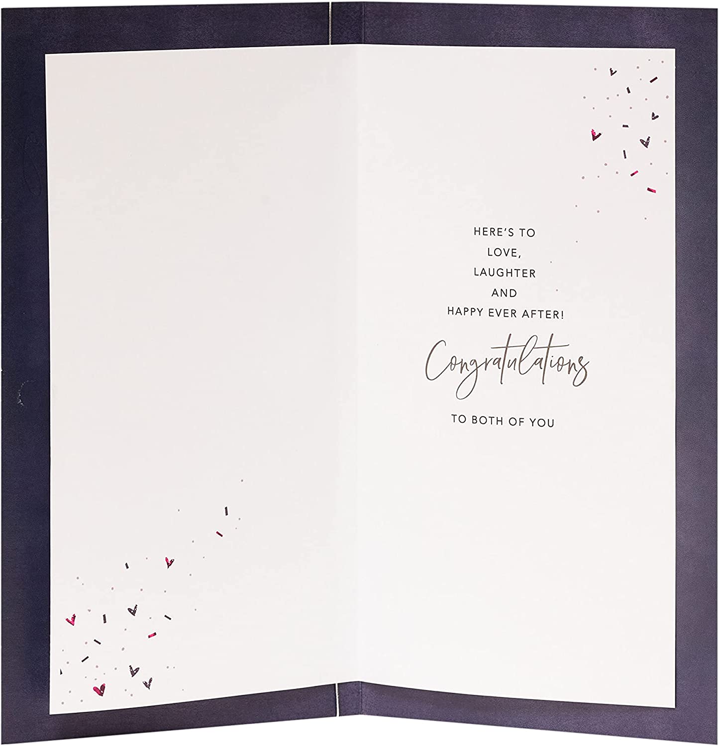 Printed on premium quality board, this celebratory wedding card features a champagne flutes design in gold and silver foil, finished with a silver cord bow. Message Inside Reads: Here's to love, laughter and happy ever after! Congratulations to Both of You. Card Size: 121mm x 229mm. Envelope Included.